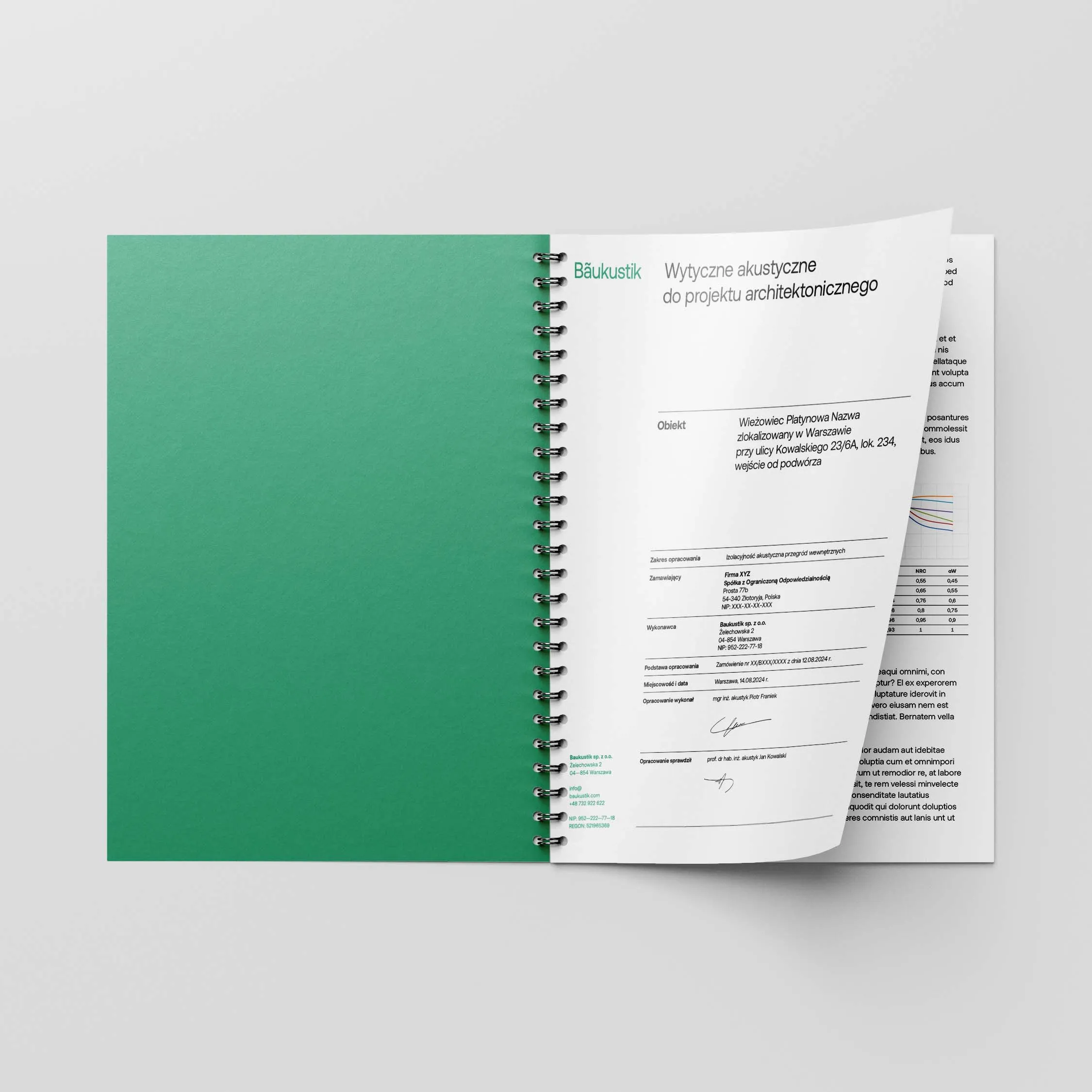They always contain references to standards, the results of measurements made, substantive analyses and a summary, with practical indications of suggested solutions. Such a study can vary in volume, depending on the scale and sophistication of the acoustic problem.