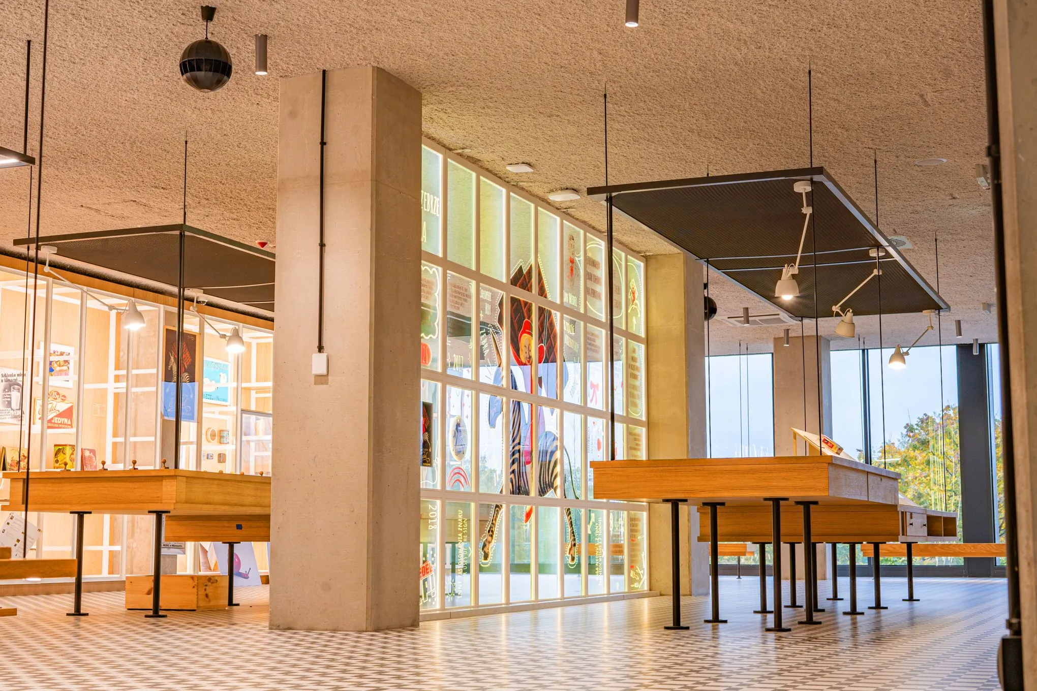 When designing the Wedel Chocolate Factory in Warsaw, the issue of noise in the main spaces with displays was taken into account. The gain associated with increased speech intelligibility in such situations is felt by every visitor, which always increases the comfort of being in this type of facility. We encourage, by the way, to use this solution more often in closed spaces with a lot of people traffic.