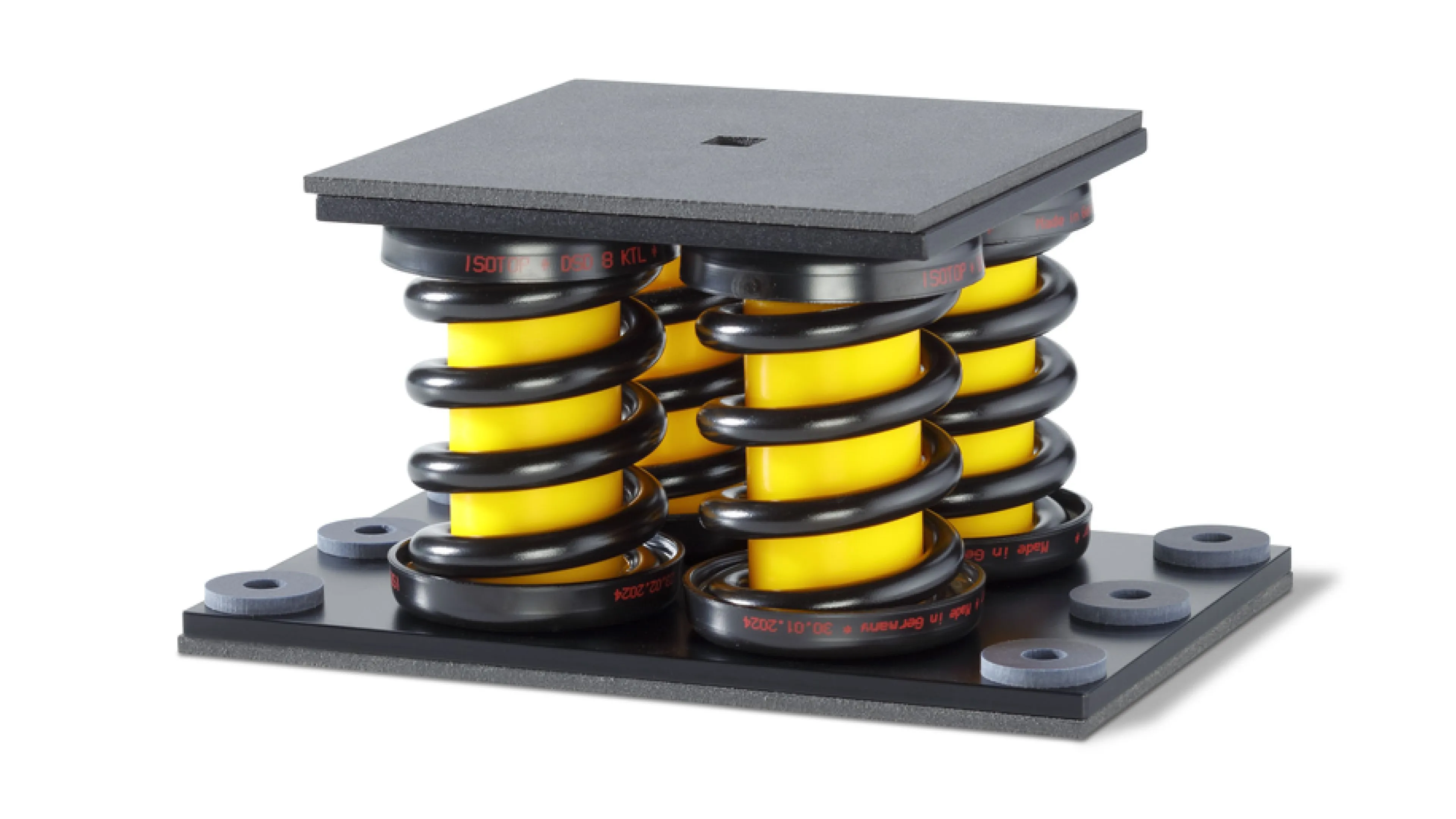 The second leading technology is spring vibration isolators. They are used for the foundation of equipment such as crushers, fans, air conditioners, pumps, loudspeakers and others that emit low-frequency vibrations. The advantages that a spring vibration isolator has are: low height, freedom of swing also horizontally, low natural frequency, and durable and compact construction.
